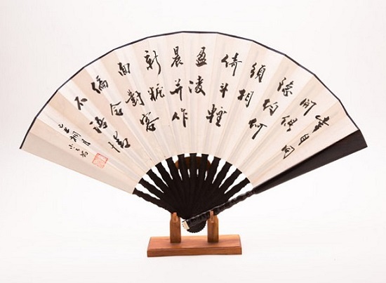 从书法扇子的创作技巧来看,少字扇面作品,创作难度较大,因其字数较少,稍有败笔,极易露短。书写者可以借助选定扇形空间的构成、墨色的变化及虚实的对比来强化视觉效果。应尽量回避书写内容中的字笔画过少、过多及同一种偏旁、同一个部首反复出现的情况(若选用隶书,还应关注内容中长横、捺脚出现的频率),若有,也要加以变化。不然,将难以写出打动人的扇面佳作来。
