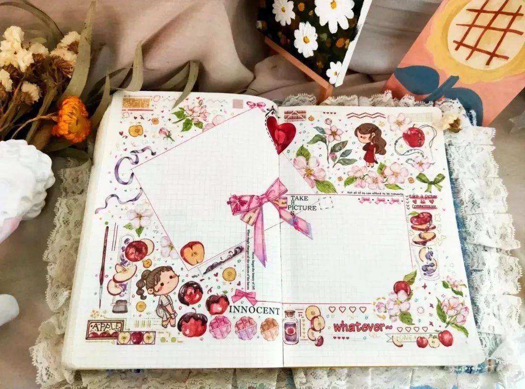 制作手账:装饰手帐本是和纸胶带的最常用法,让空白的笔记本变得更加缤纷、有生活感。